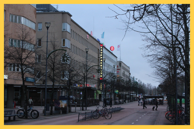 Op onderstaande kaart zou u de volledige wandeling kunnen meevolgen. Hierbij heb ik op de kaart de belangrijkste punten aangeduid. We vertrekken vanuit onze campus en wandelen vervolgens via de rode lijn richting het museum en het grootste shoppingcenter van Joensuu. Ik ben van plan om met enkele medestudenten een uitstapje te plannen naar dit kunstmuseum. Ik wil me namelijk op elk vlak proberen te cultiveren. Het shoppingcenter lijkt op één van de bijzondere pakhuizen die ik al in een vorig blogbericht beschreef, maar is vanbinnen meer te vergelijken met shoppingcentra die voor ons bekend zijn. Je ziet dat het recentelijk is gerenoveerd.