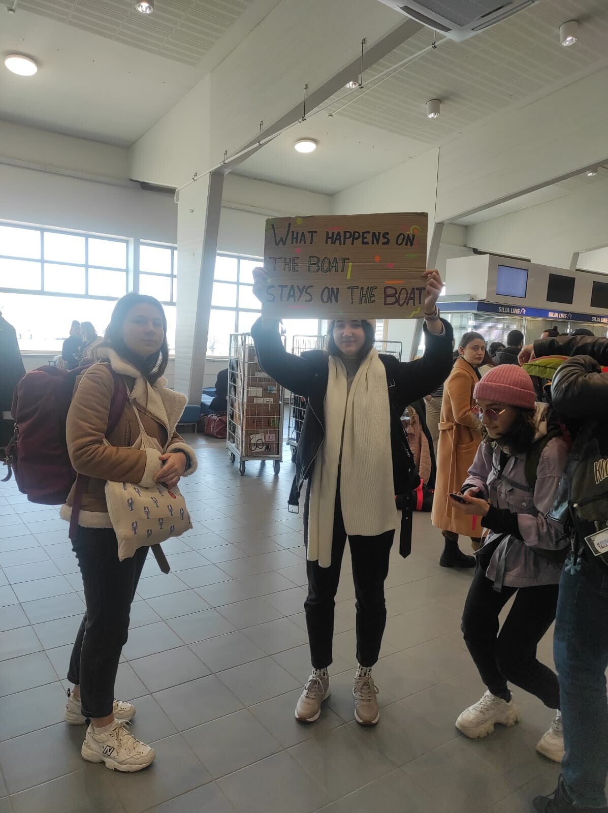Het boarden van het schip duurde een walgelijk lange tijd, aangezien 1200 studenten allemaal tegelijkertijd aan boord moesten. Na een lange wachttijd, die we konden verdoezelen met wat spelletjes, konden we dan uiteindelijk aan boord. Een schip van 14 verdiepingen dat boordevol activiteiten zat. Elke dag konden we workshops ‘face-painting’ meevolgen, gaan ‘beer-pongen’, quizzen, noem maar op. Het schip had een boulevard, binnenin, waar je na 2 minuten doorstappen het ene eind van het andere kon onderscheiden. Wel indrukwekkend. We, en ik deed deze cruise samen met de Grieken, Liana, Seyma en Nati, besloten wat samen te blijven en hadden een geweldige tijd met het ontdekken van alles wat er te doen was.